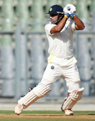 Earlier, the opening pair of Rahane and Vijay set the tone for the day. They were equally aggressive to bad balls and watchful to occasional good balls in offer from the Rajasthan bowlers even with new ball. The pair scored boundaries at will and partnership reached three figures at a rate of 4 runs per over. With each passing ball, the chance for wicket to fall looked dim as both Rahane and Vijay were reluctant to throw away wickets through any unneeded shots. Rajasthan tried to tighten the runs after lunch with defensive field set but inconsistent bowling made the life of batting easy. But a stroke of luck gave Rajasthan their first wicket and the huge 173 runs opening stand got broken finally.