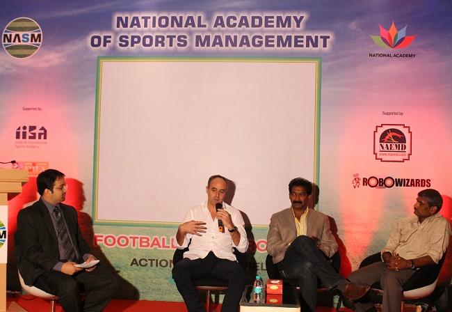 National Academy of Sports Management (NASM) recently held an Industry Seminar – Football Masterclass – Action Off the Field. Mr Miguel Macedo – FIFA & UEFA certified Match Agent from Portugal, Mr Henry Menezes -CEO of the Western India Football Association (WIFA) and Father Lawrence D’souza – Chairman – MDFA Grassroots Program, were the guest speakers for the evening.