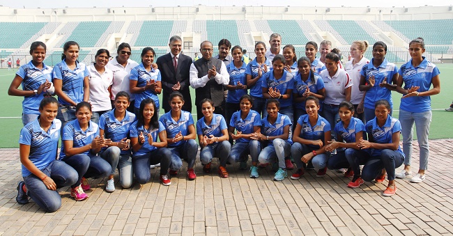 The entire Indian Women’s Hockey Team led by Captain Deepika and Coach Neil Hawgood was felicitated by Shri. Vijay Goel, Honorable Minister for Youth Affairs and Sports (Independent Charge) and Shri. Rajiv Yadav, Secretary, Ministry of Youth Affairs and Sports. Former Indian Hockey Captain Viren Rasquinha was also present at the occasion and was all praise for the remarkable performance by the Indian Women’s Hockey team during the tournament.