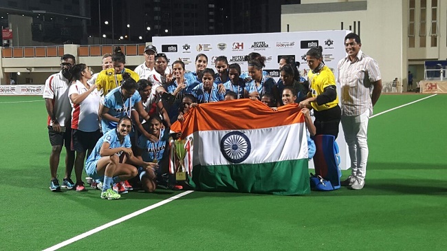 On this memorable occasion, Hockey India today also announced a cash prize of Rs 2.00 Lakhs the each for the players and the Chief Coach Neil Hawgood. Besides this Hockey India also announced Rs 1.00 Lakh for the other support staff of the team. Prize of Rs 1.00 Lakh was announced for Deepika Thakur – the Highest Scorer of the Tournament.