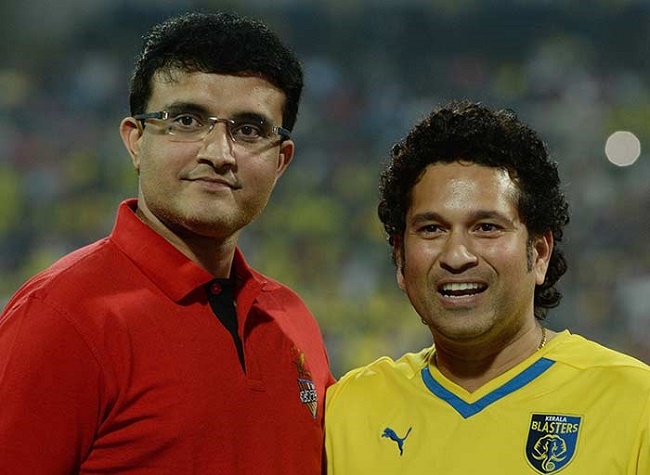 Sachin Tendulkar, co-owner of Kerala Blasters FC along with Sourav Ganguly, co-owner of Atletico de Kolkata